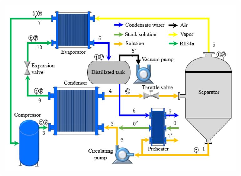 基于机械压缩原理,将蒸发器中产生的二次蒸汽通过压缩机进行压缩,提高其压力和温度后,再送回蒸发器作为加热蒸汽使用使蒸发器内的溶液持续蒸发。只需补充少量的新鲜汽,主要依靠蒸汽的循环再利用来实现热量的高效回收和利用。